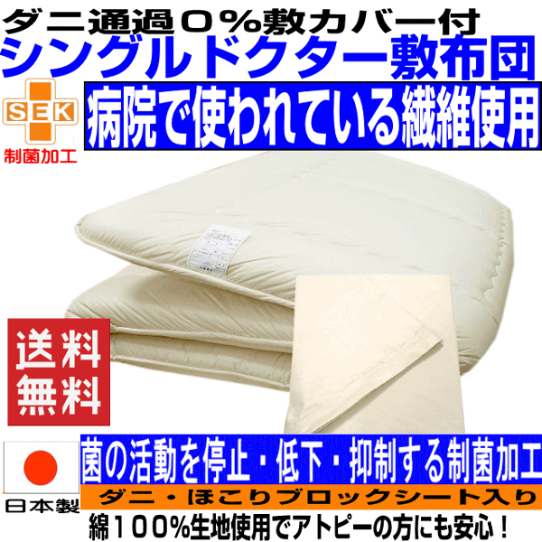 お預りOK/病院で使われている 敷布団高密度カバー付 シングルサイズ 【日本製】制抗菌 防ダニウォッシュ多層構構造 敷き布団 シングルロングサイズ 防臭 吸汗 アレルギー・腰痛 ドクターEs しき布団 しきふとん/【送料無料】