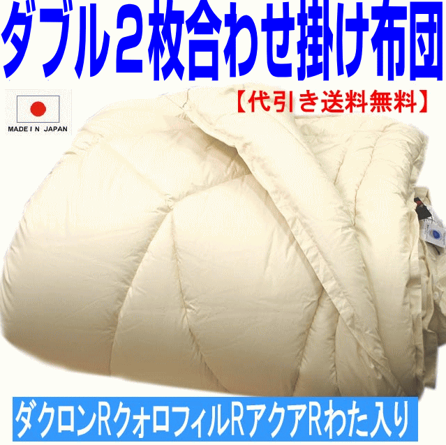 お預りOK/お仕立て正規品・アレルギー対策掛布団 オールシーズン ダブルサイズ日本製クォロフィル2枚合わせ掛け布団 ダブルロング/送料無料